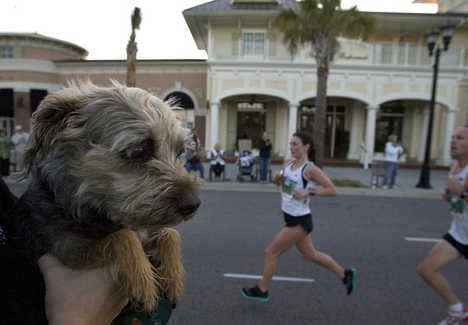 Happy Camper the dog waiting...and waiting... and waiting...to see her owner run by in the Myrtle Beach 1/2 Marathon