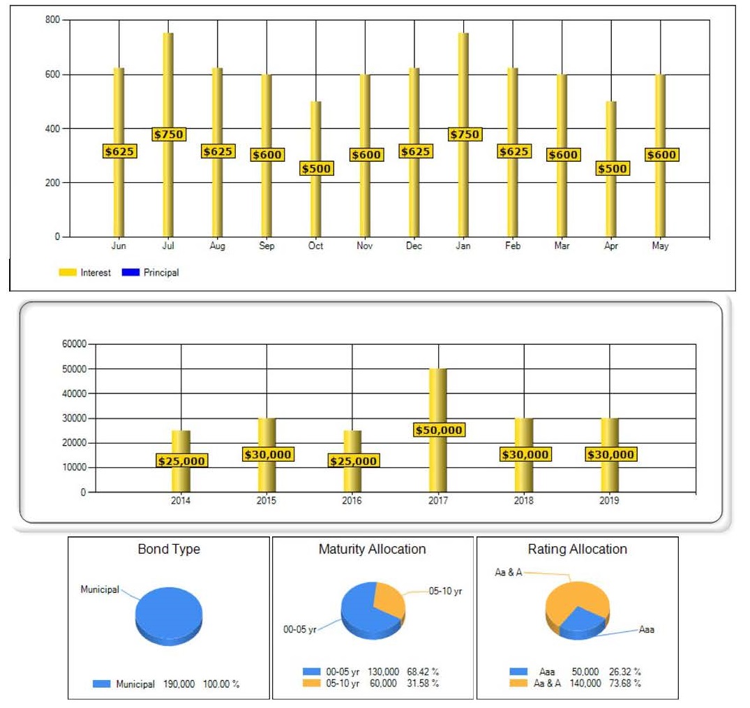 Credit Rating – Agencies that evaluate the creditworthiness of municipal issuers include Moody’s, Standards and Poor’s, Fitch and White’s. Typically the ratings start at AAA and have three gradations per letter. Investment grade ends at BBB, junk starts at B or CCC, and bonds in default or those that are late or have missed interest or principal payments are rated as D. Rating agencies also may put issuers on either positive or negative watch for potential changes. Smaller municipalities often cannot afford to pay the agencies to issue ratings on their debt, and thus will be “non-rated” or NR. WR indicates that a rating agency has withdrawn it rating, which occurs for a variety of reasons.